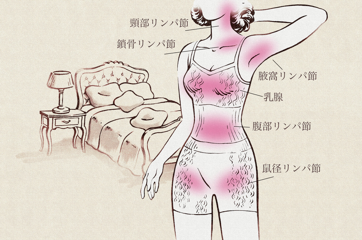 「nainen」の温活ニットランジェリーは、身体のリンパ節をはじめ、大切な部位をしっかりと覆うことを考えてつくられています。
