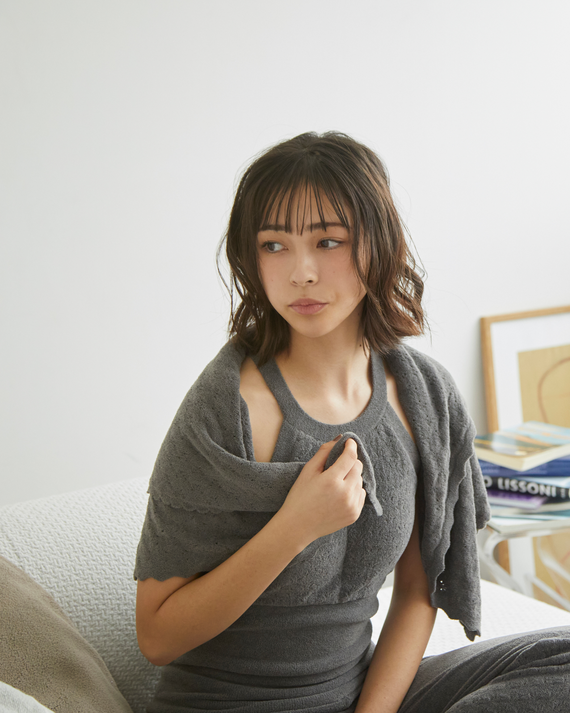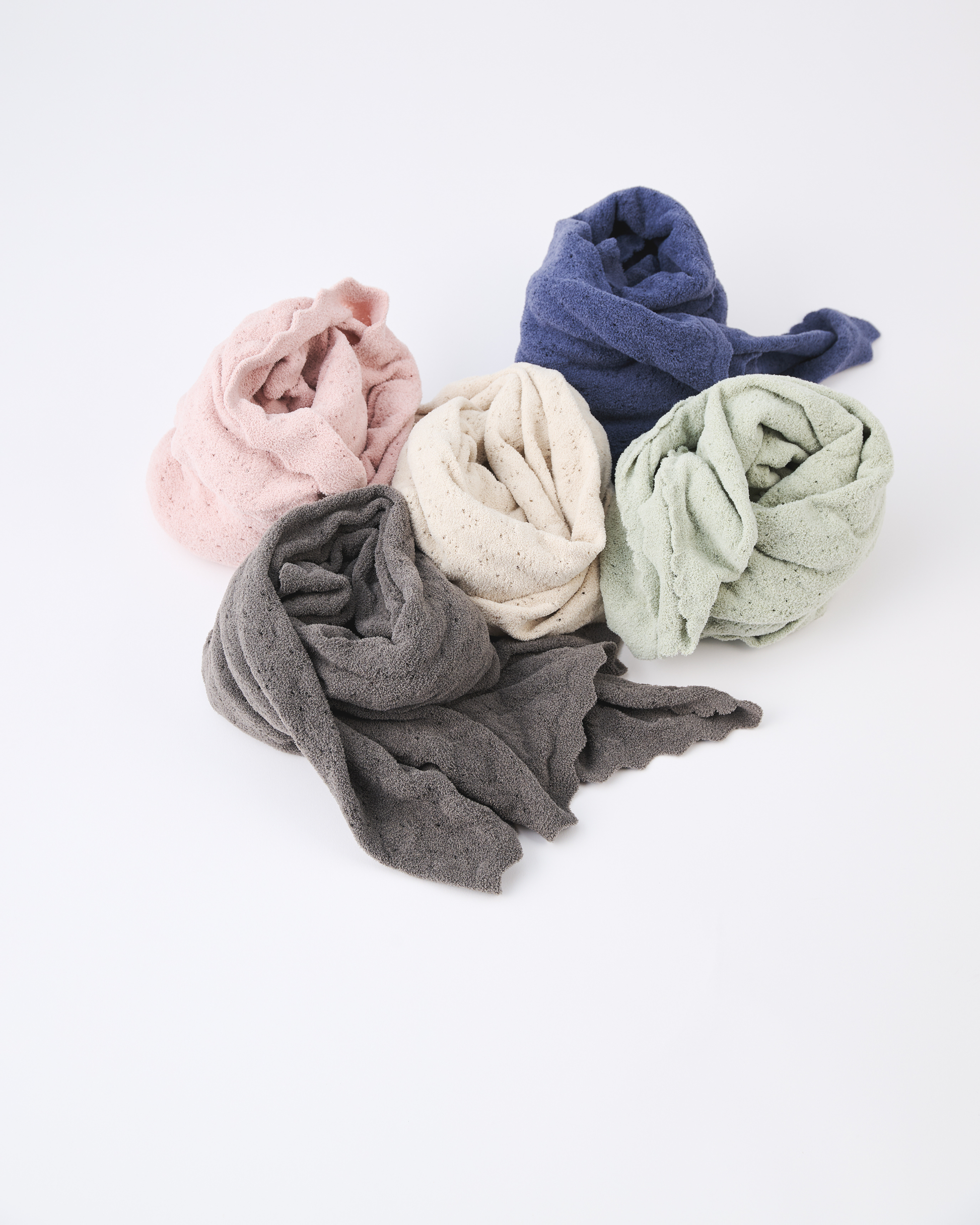 首回りに巻いたり、膝掛けや腰回りをぐるっと巻いて冷え対策に。